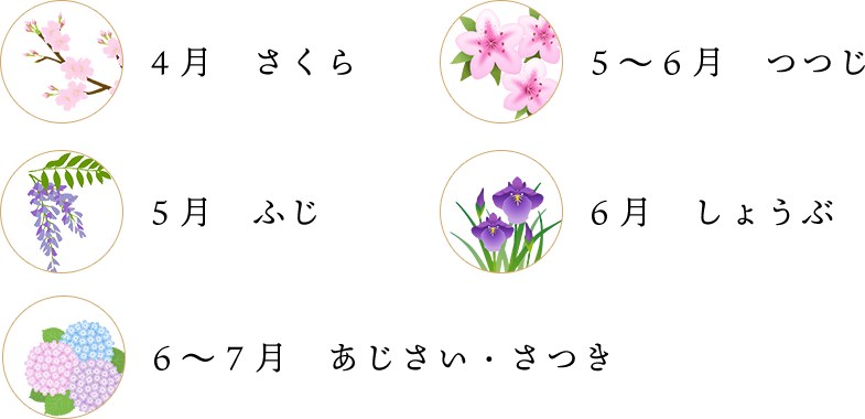 季節ごとに四季折々の花が咲き誇ります。どうぞ自由にご覧ください。